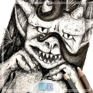 Speaking of gargoyles, my latest charcoal drawing, “Who Guards the Guardians” is up on display *right now* at ALTR gallery for the Otherworldly Arts Collective’s annual Gods & Monsters show. The show will have open gallery hours for just two more days: October 24 at 6-9PM and October 25 at 3-7PM. My spouse and I stopped by for the opening night celebrations over the weekend and it is FULL of delightful horror-themed art. Perfect for the spooky season!